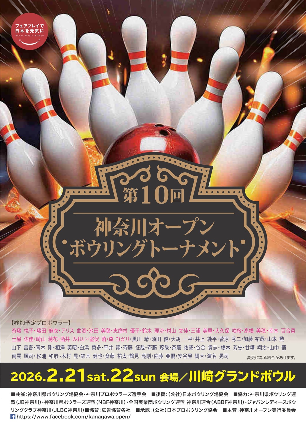 【第10回神奈川オープンボウリングトーナメント】の詳細は、コチラの公式ホームページよりご確認ください。