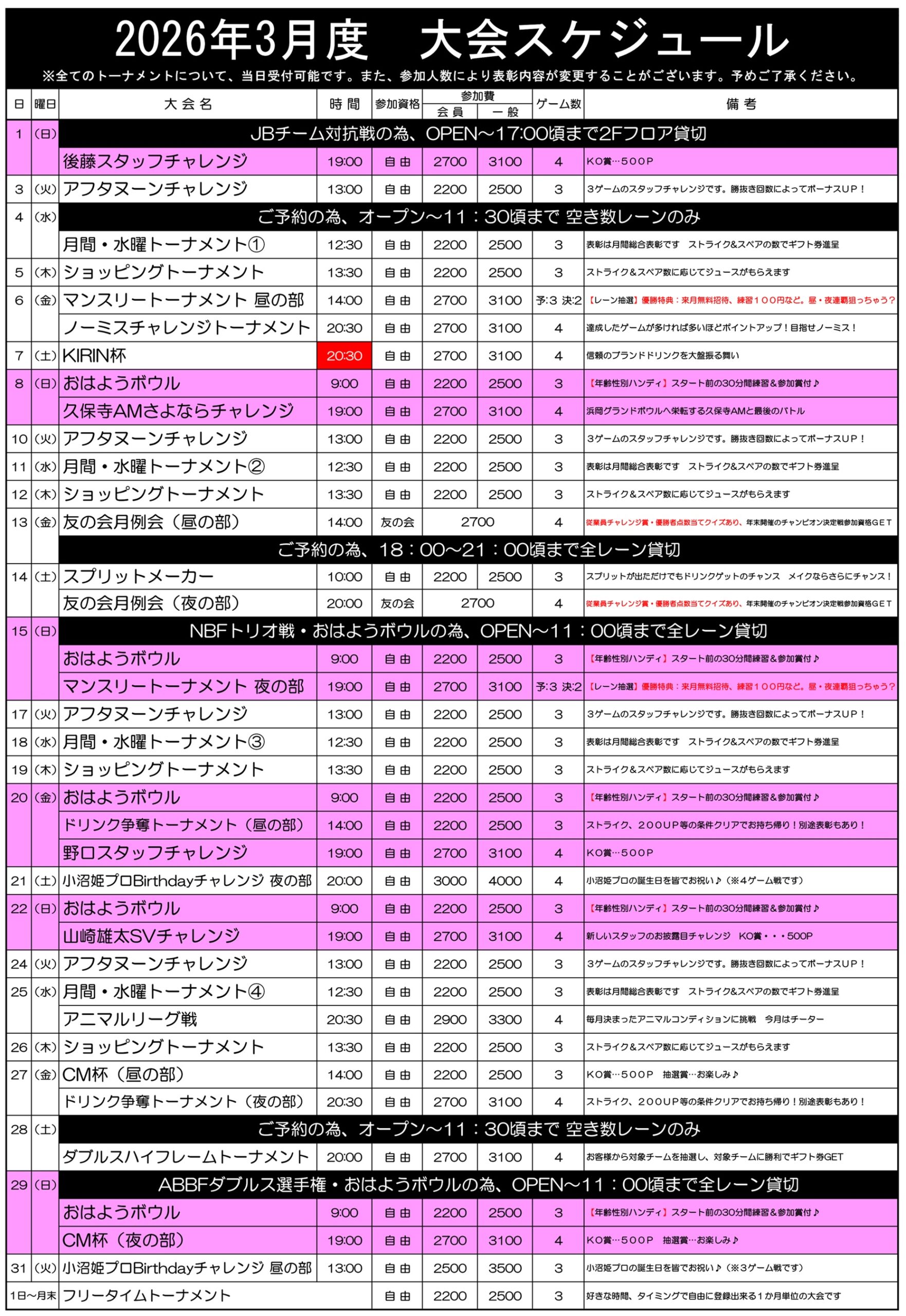 3/20(祝金) 春のファミリーボウリング大会を開催します♪ 申込受付中!