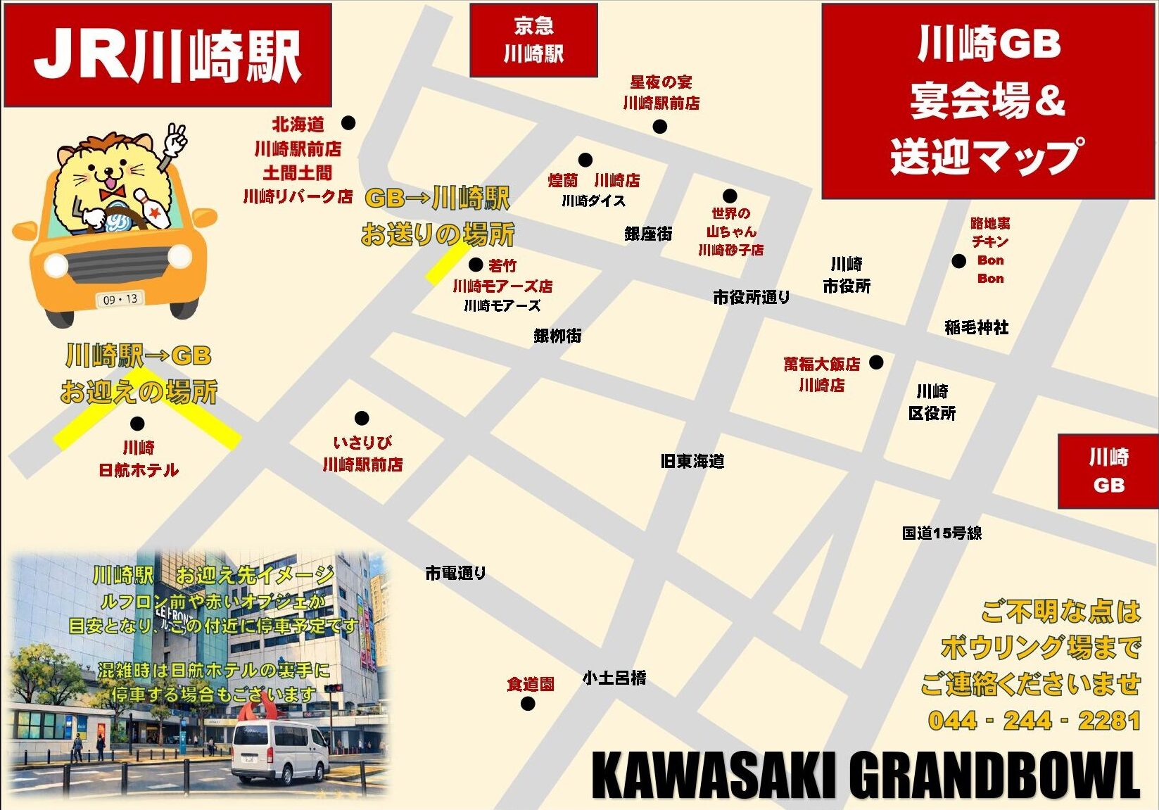 川崎駅へのお迎えの場合や