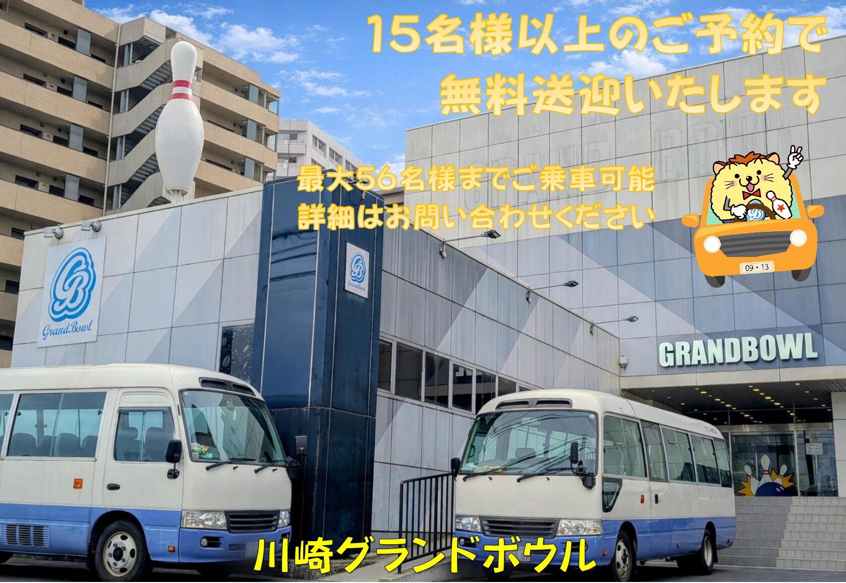 15名様以上のご予約で無料送迎いたします。