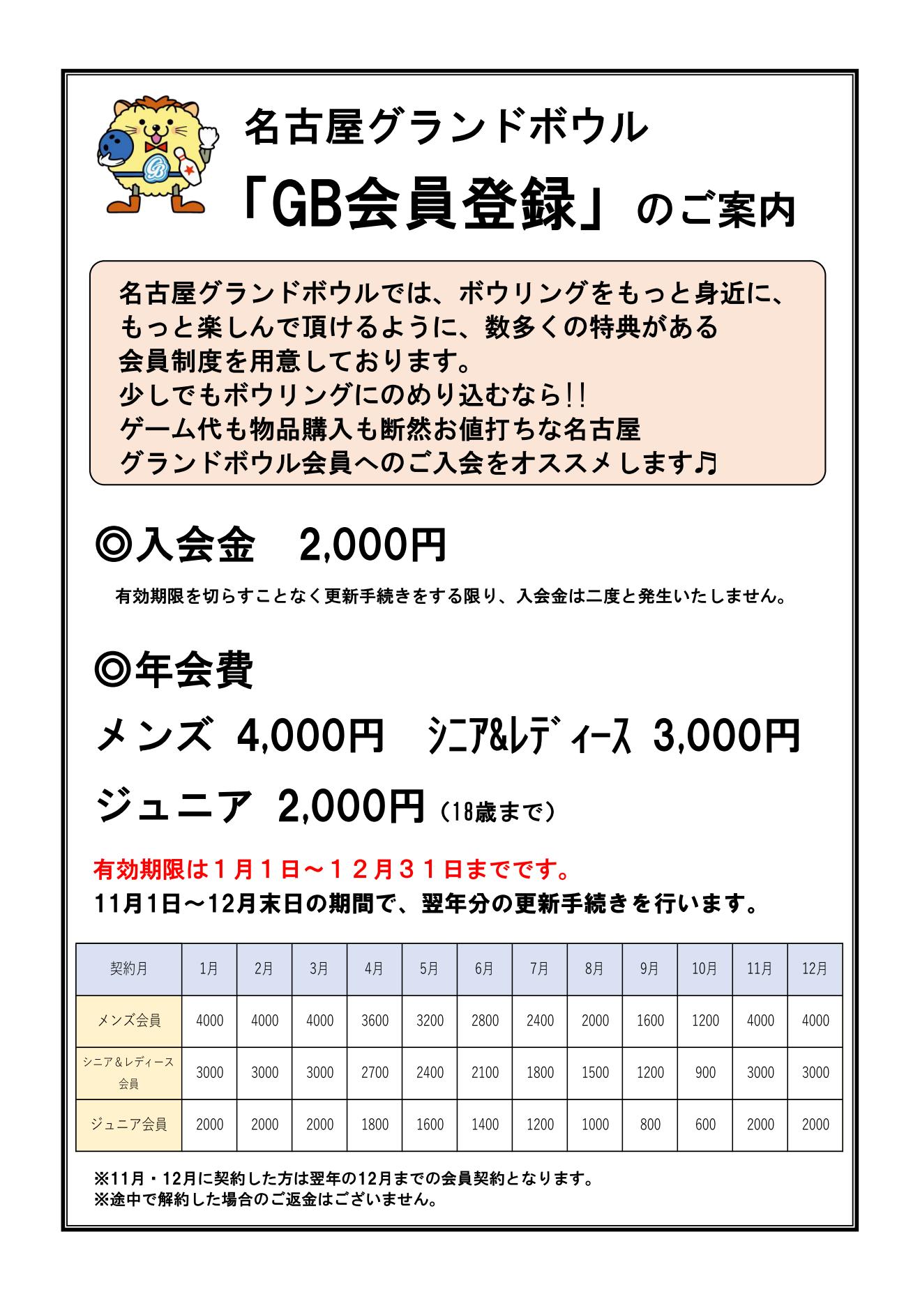 ◎入会金 2000円 (有効期限を切らすことなく更新手続きをする限り、入会金は二度と発生いたしません)