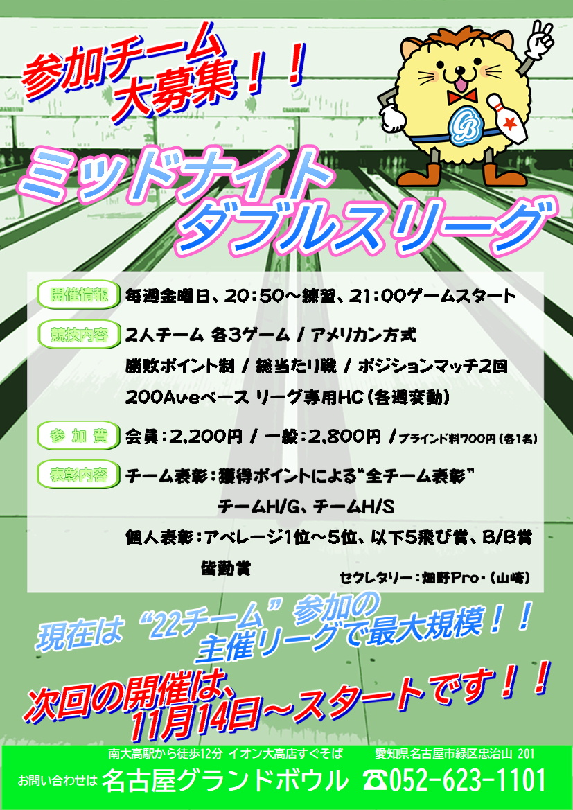 第43回リーグは、11月14日(金)~スタートしました!!