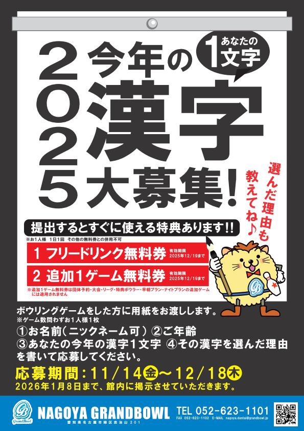 2026年1月8日まで、ボウリング場内にて掲示させていただきます。