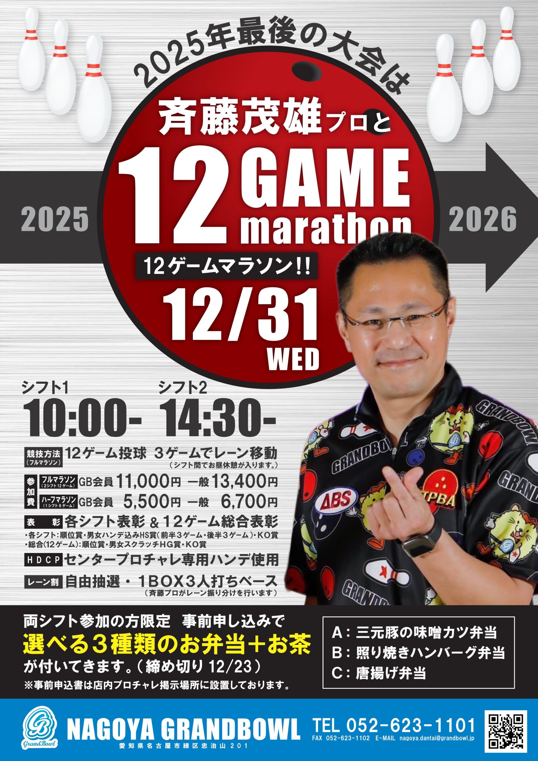 12/31(水) 2025年最後の大会は斉藤茂雄プロと12ゲームマラソンを開催しまーす