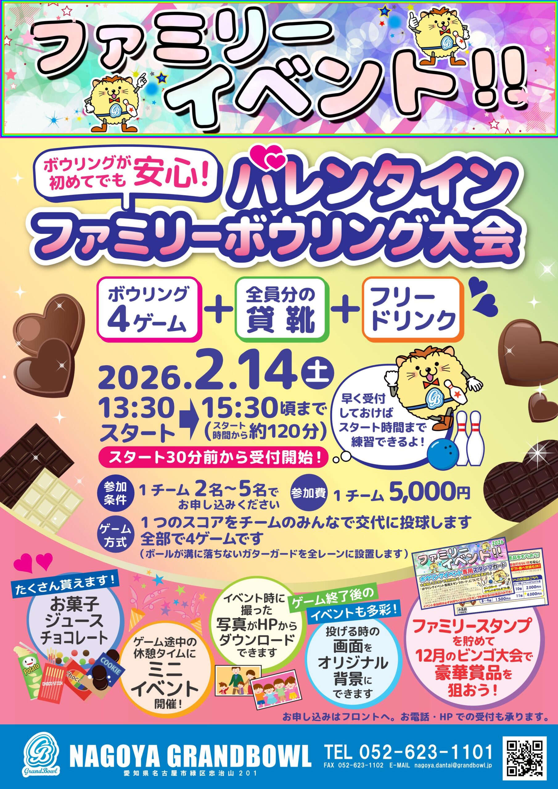 ~2月14日 13:30~バレンタインファミリーボウリング大会を開催します~