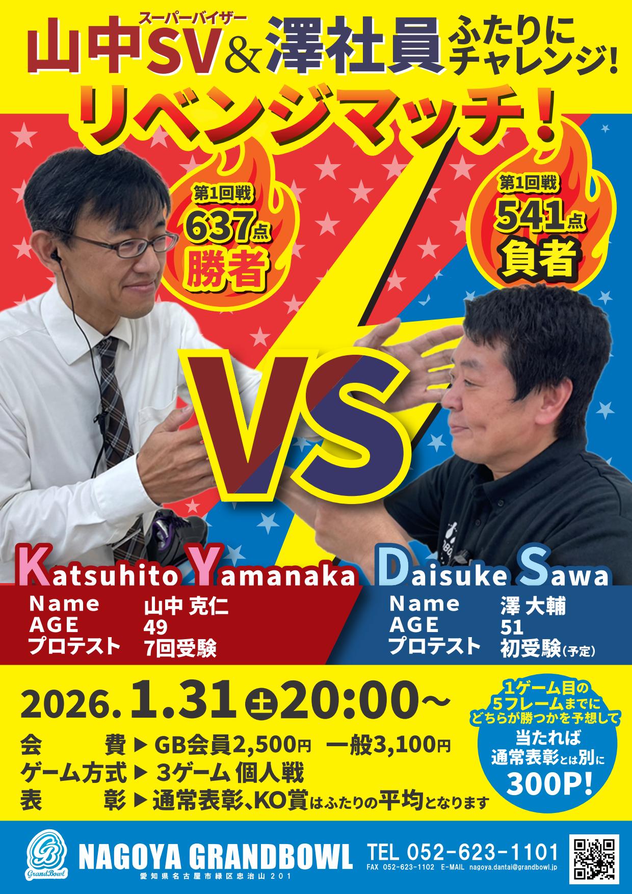参加の皆さまは、1ゲーム目5フレ迄にどちらが勝つかを予想して、見事的中した方には通常表彰とは別に300Pを進呈いたします!