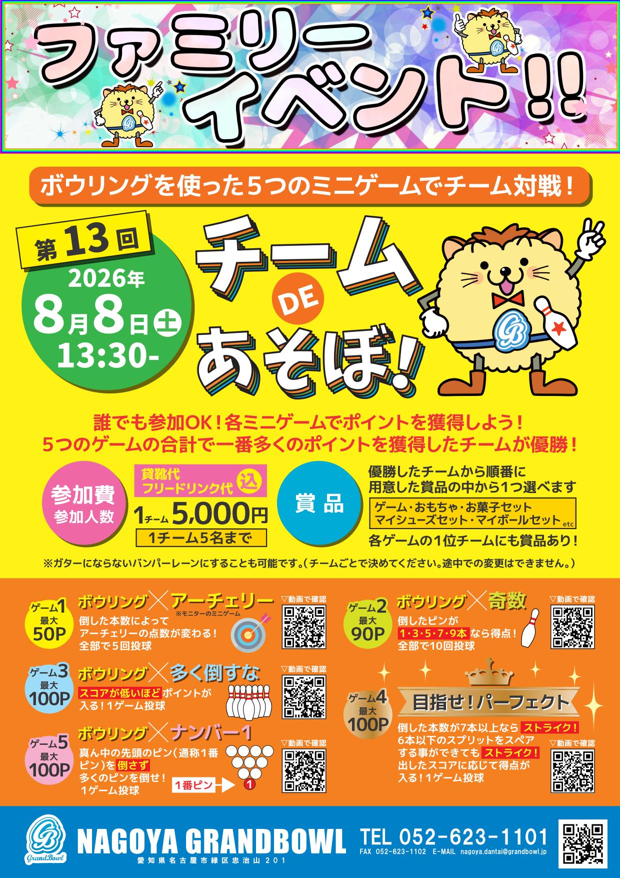 5つのミニゲームを行い、獲得したポイントが1番多いチームが「第13回チームバトル王」となります!!!