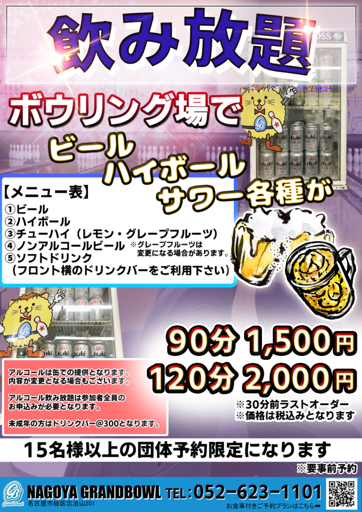 ボウリングをしながらボックスで飲み放題を楽しむ場合は