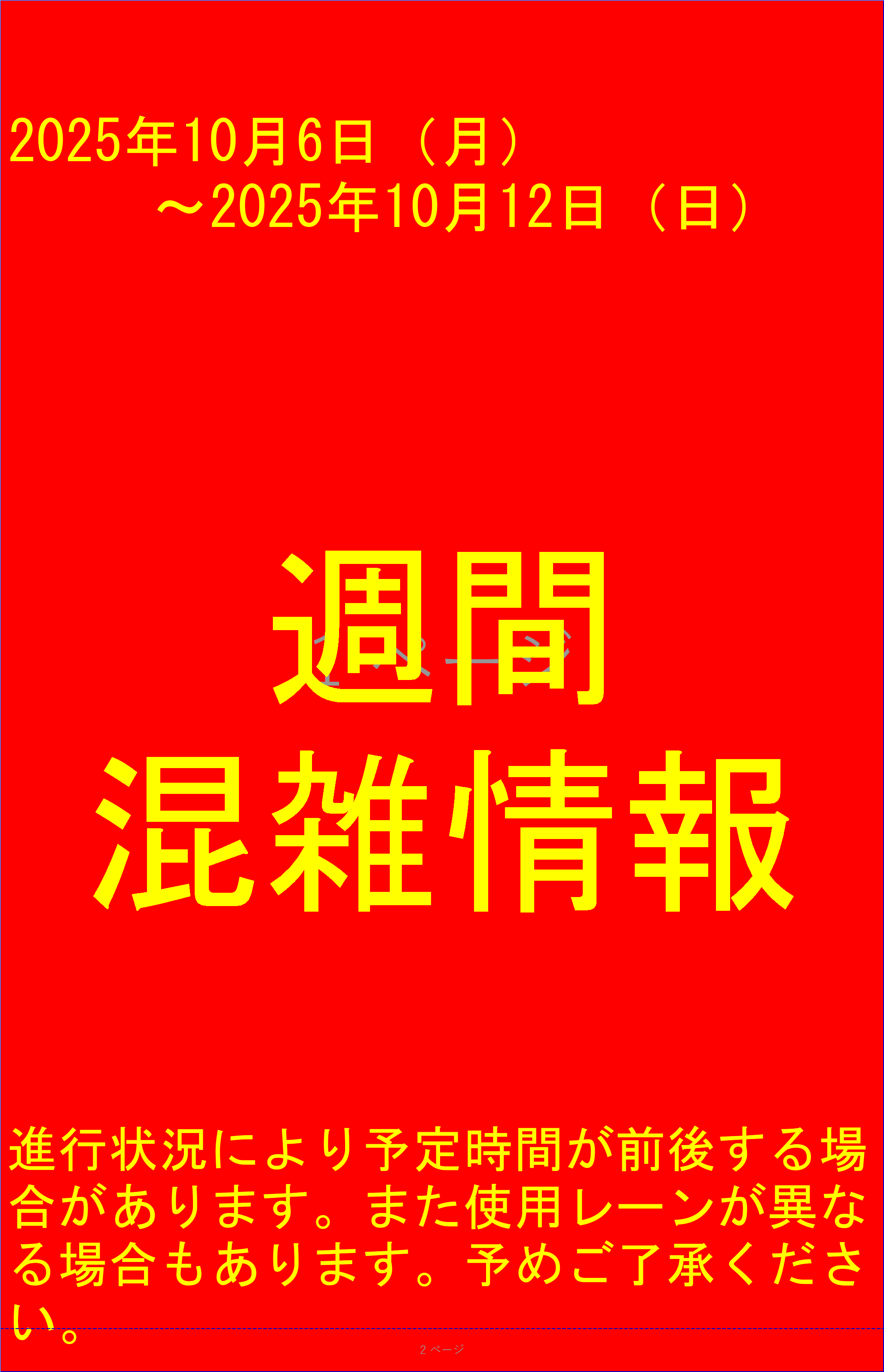 週間混雑状況10/6(月)~12(日)まで