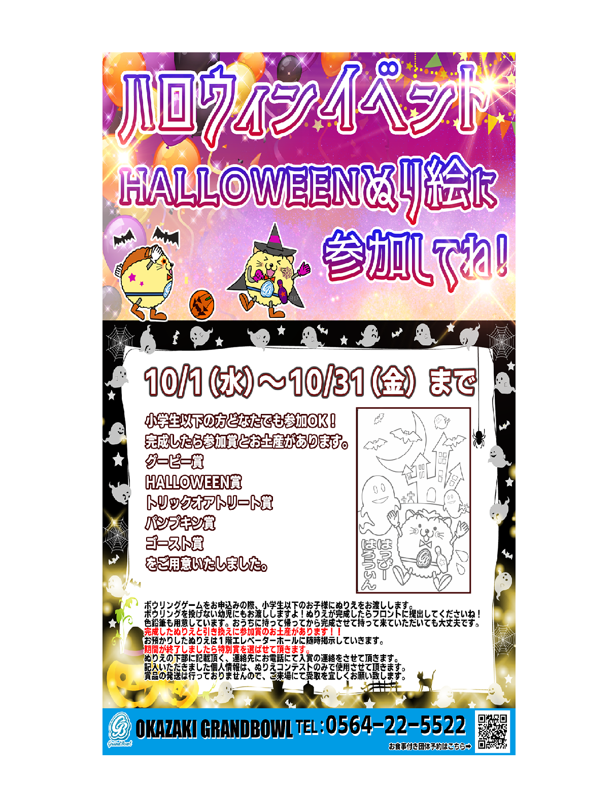 ボウリングゲームをお申込みの際、小学生以下のお子様にぬりえをお渡しします。