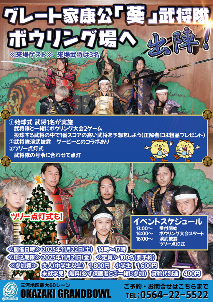 先着になりますので申し込みは岡崎グランドボウルにお電話ください。