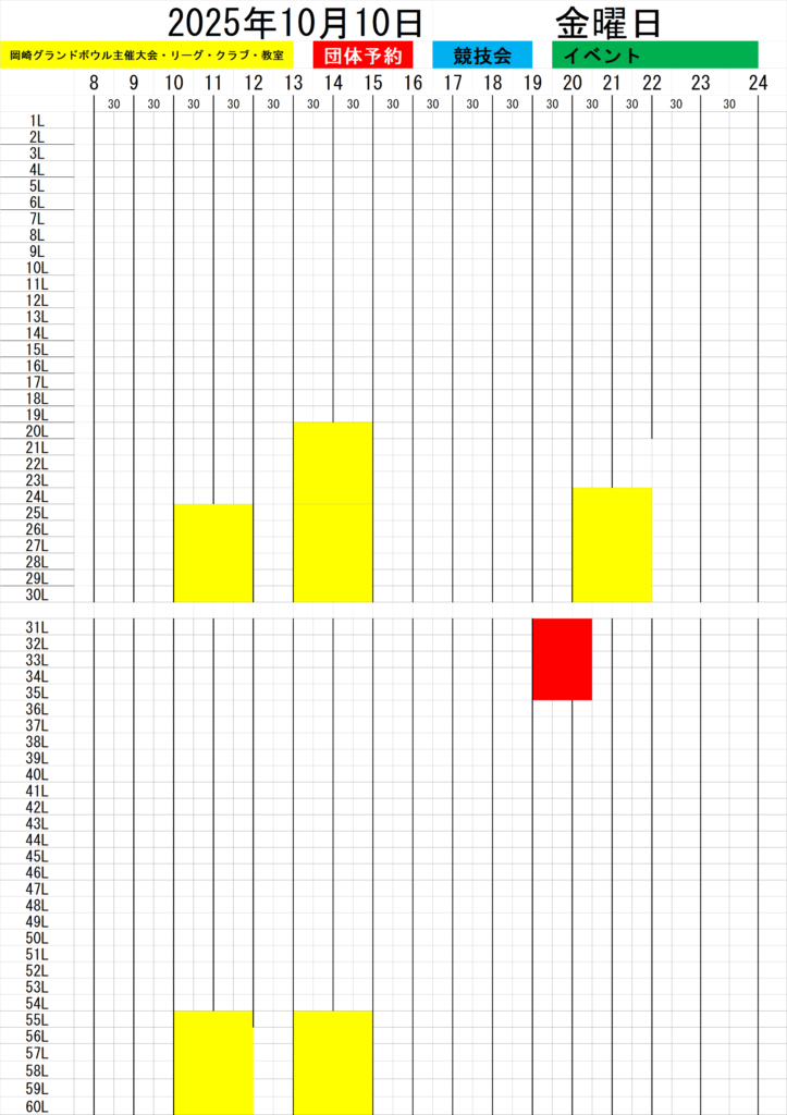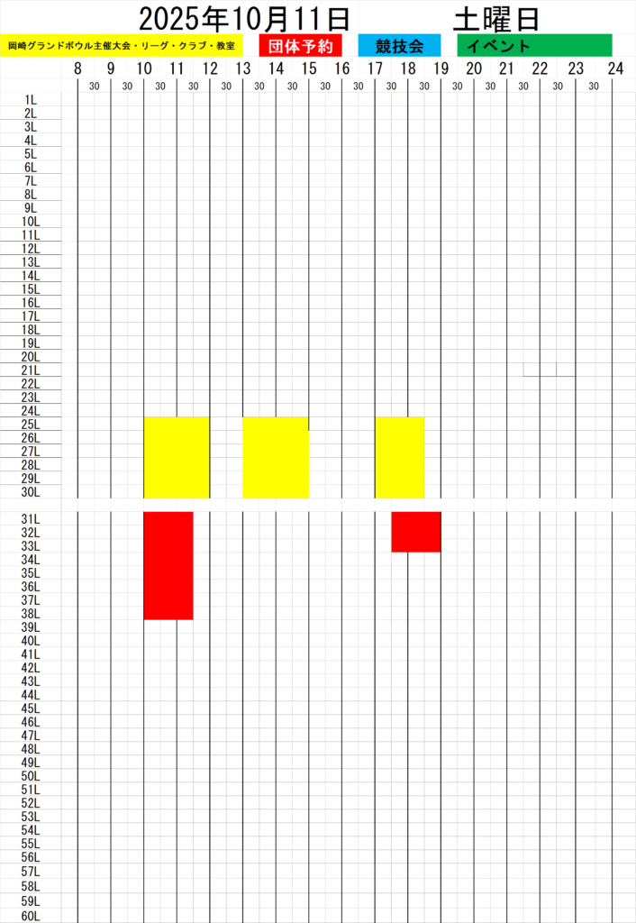 週間混雑状況10/13(月)~19(日)まで