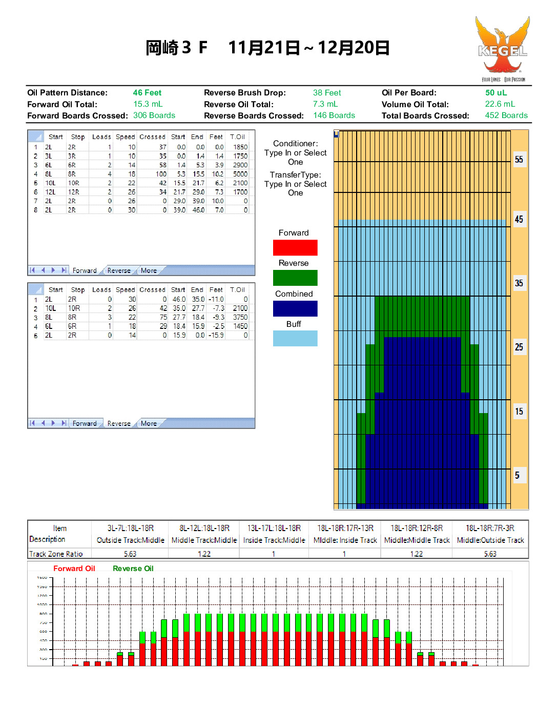 前回よりオイルが長いけど薄いパターンなので弱めのカバーで非対称のボールがマッチしやすいです。