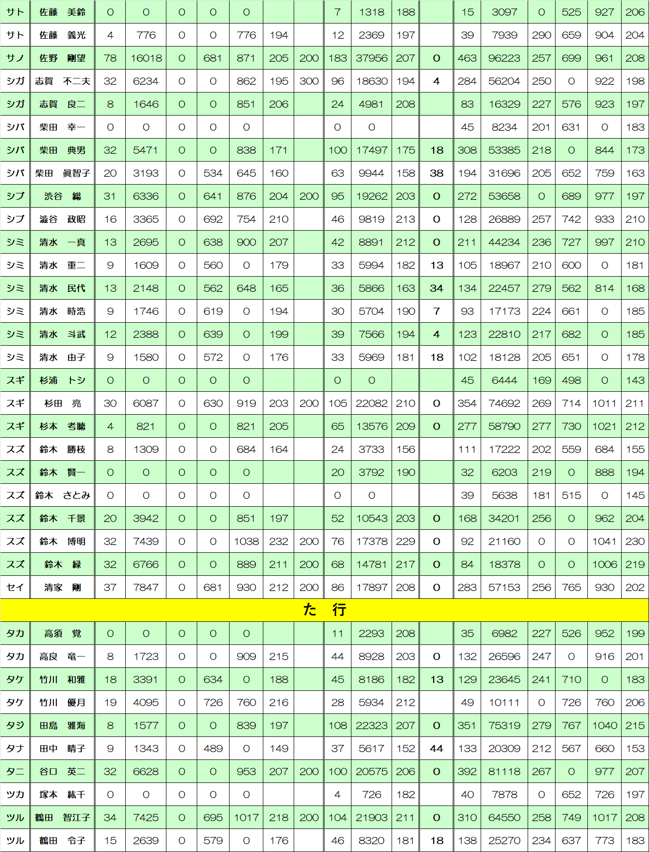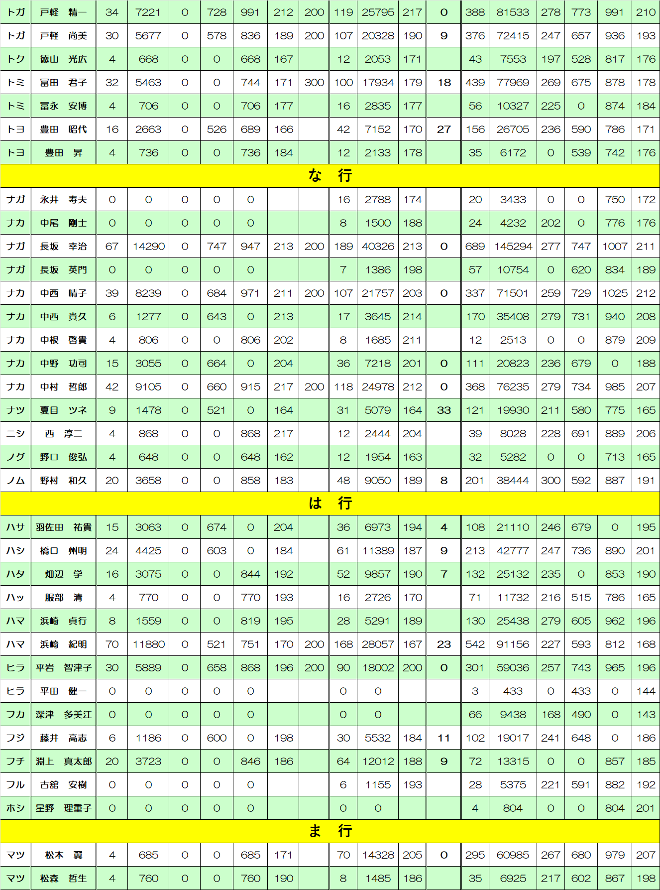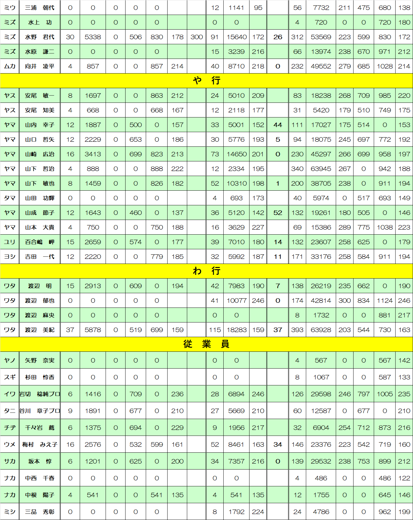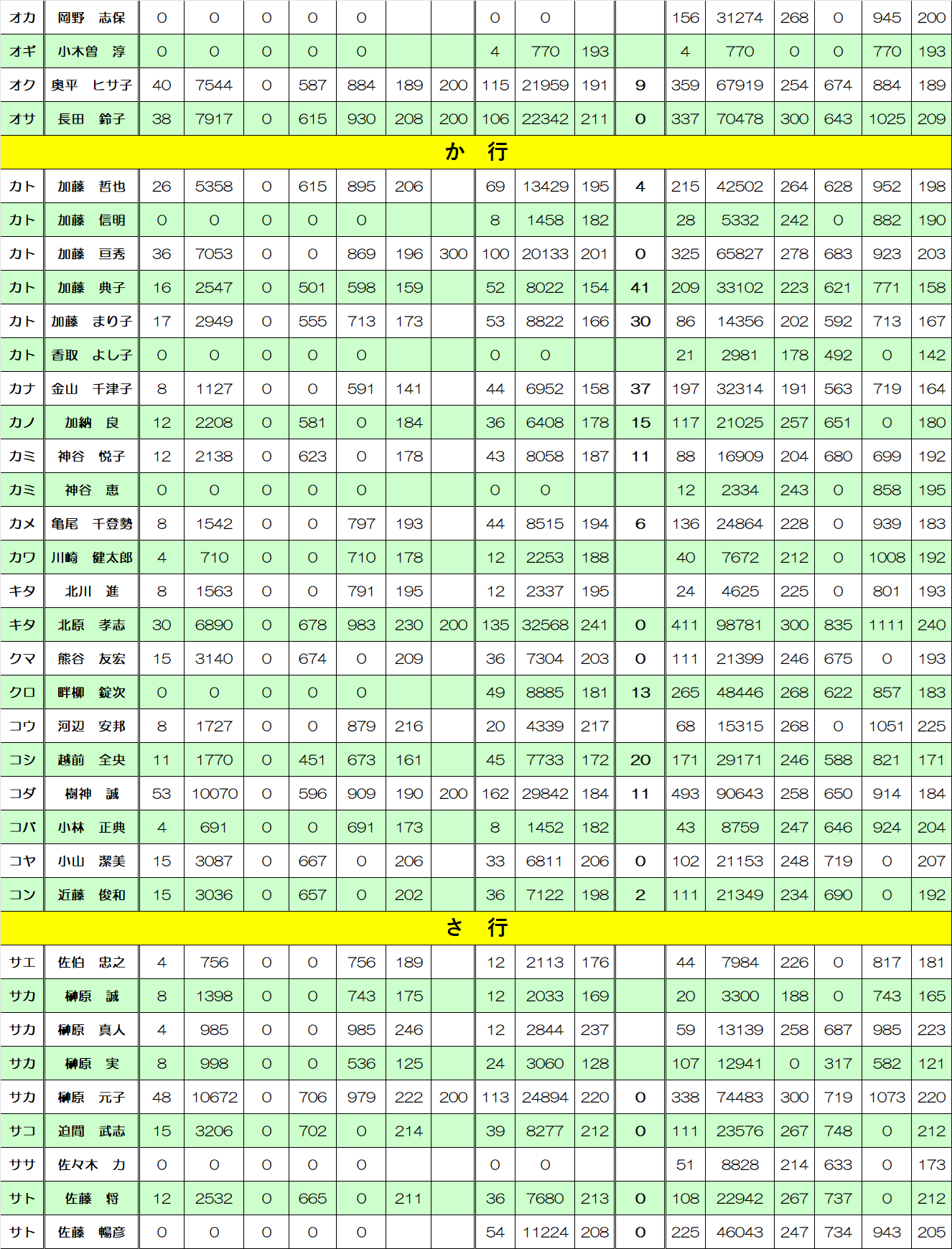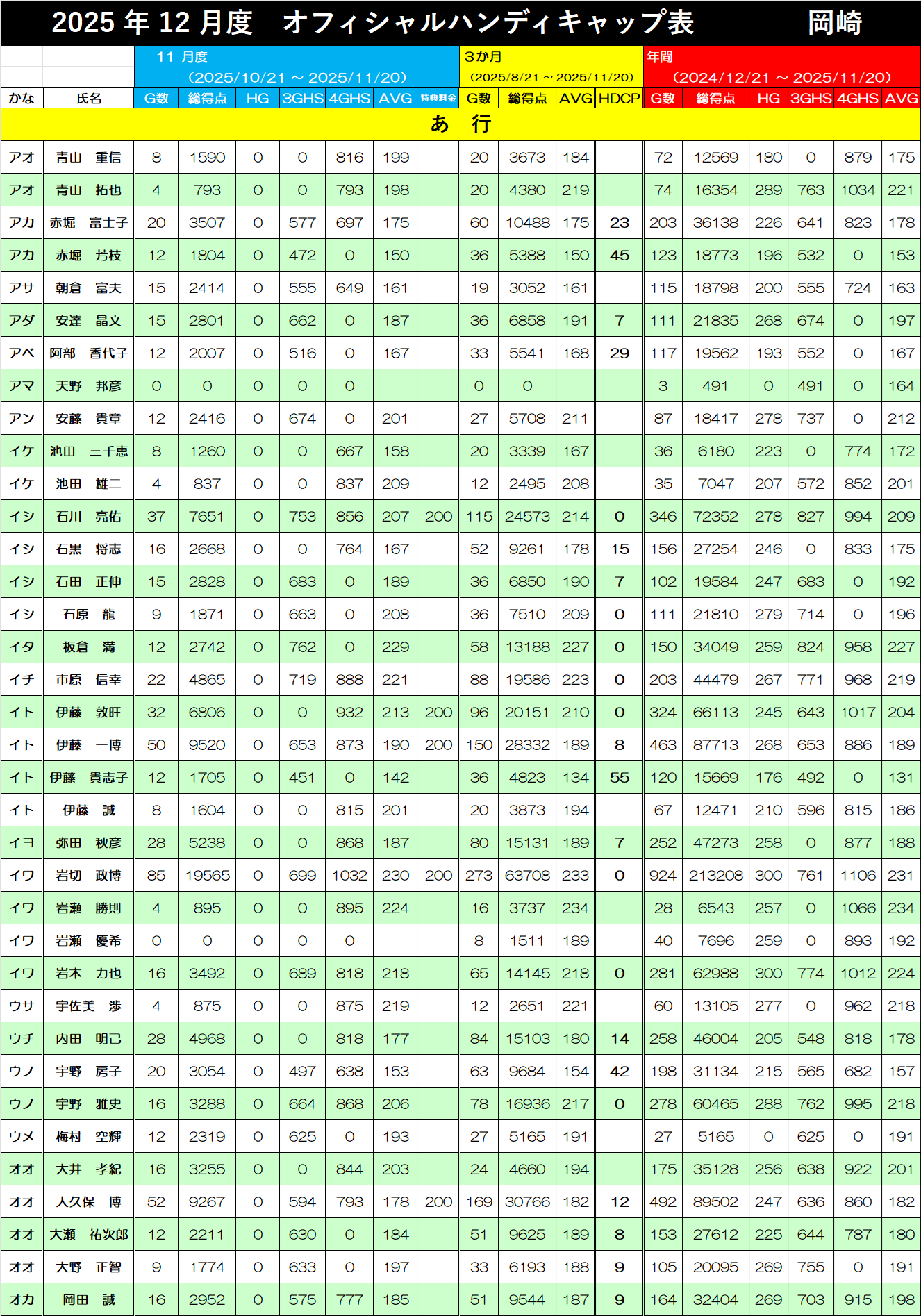 12月度オフィシャルハンディキャップ表です。(10/21~11/20集計分)
