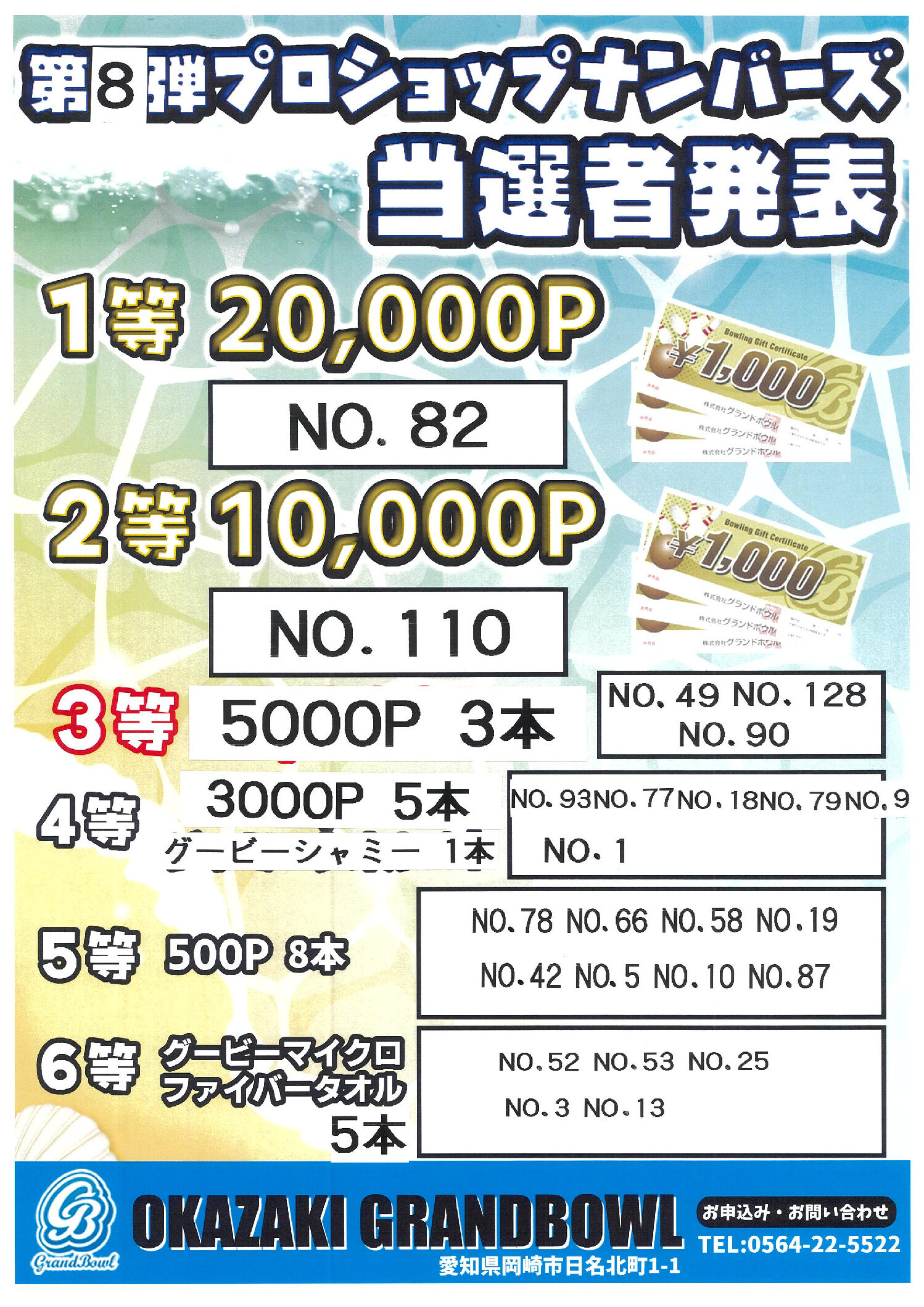 第8弾プロショップナンバーズ当選番号発表です!!