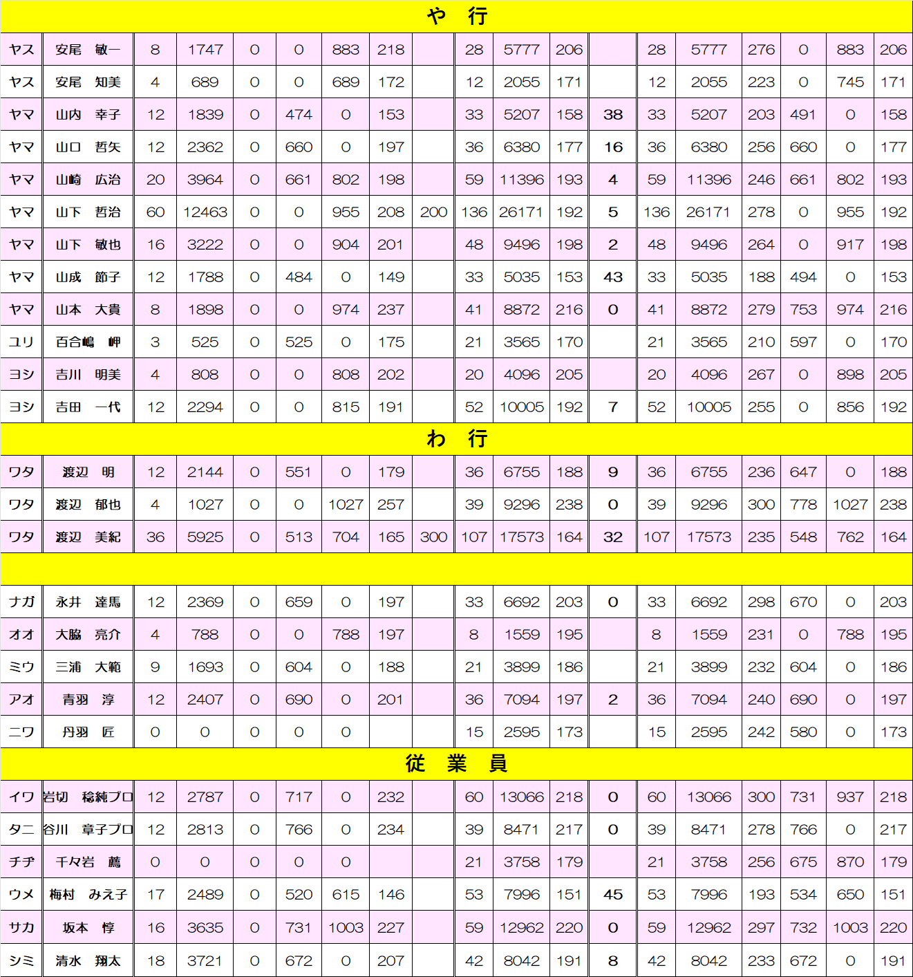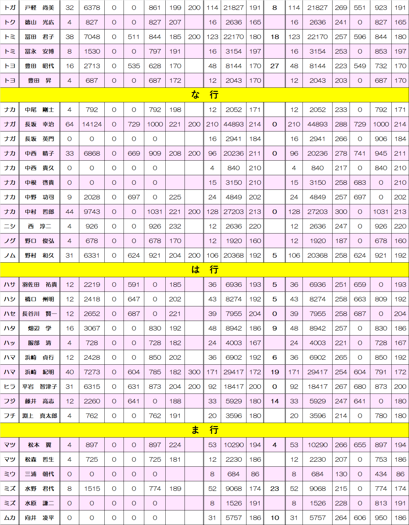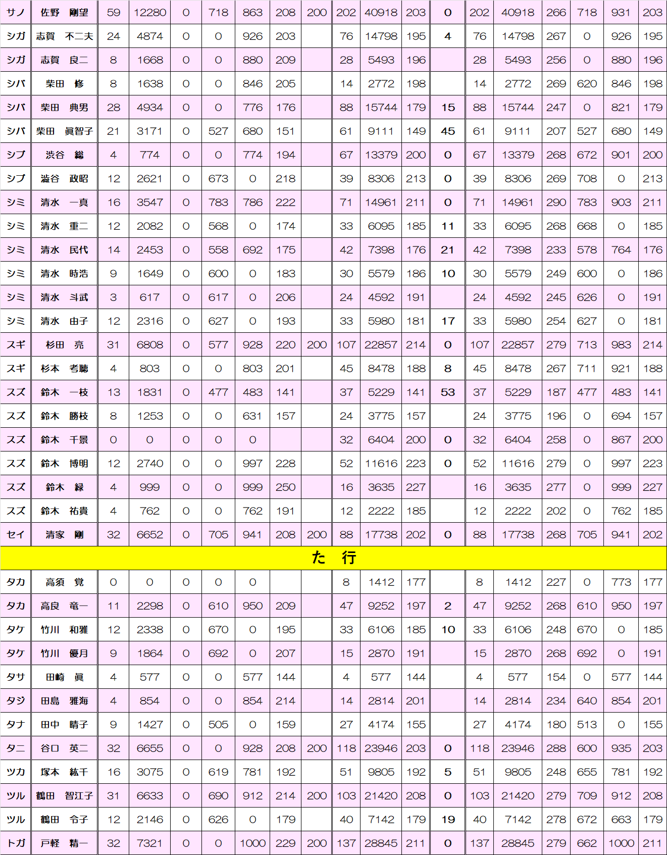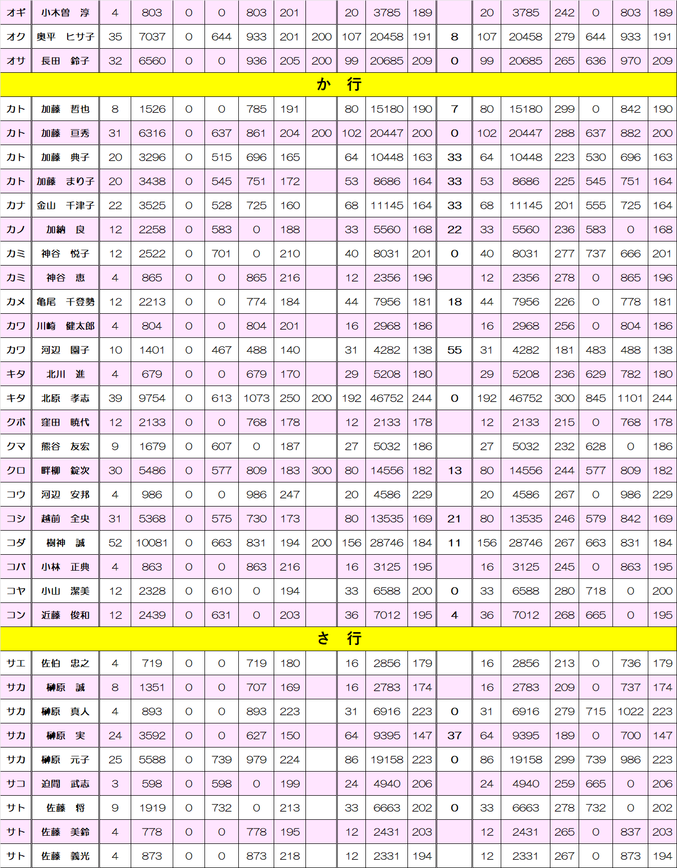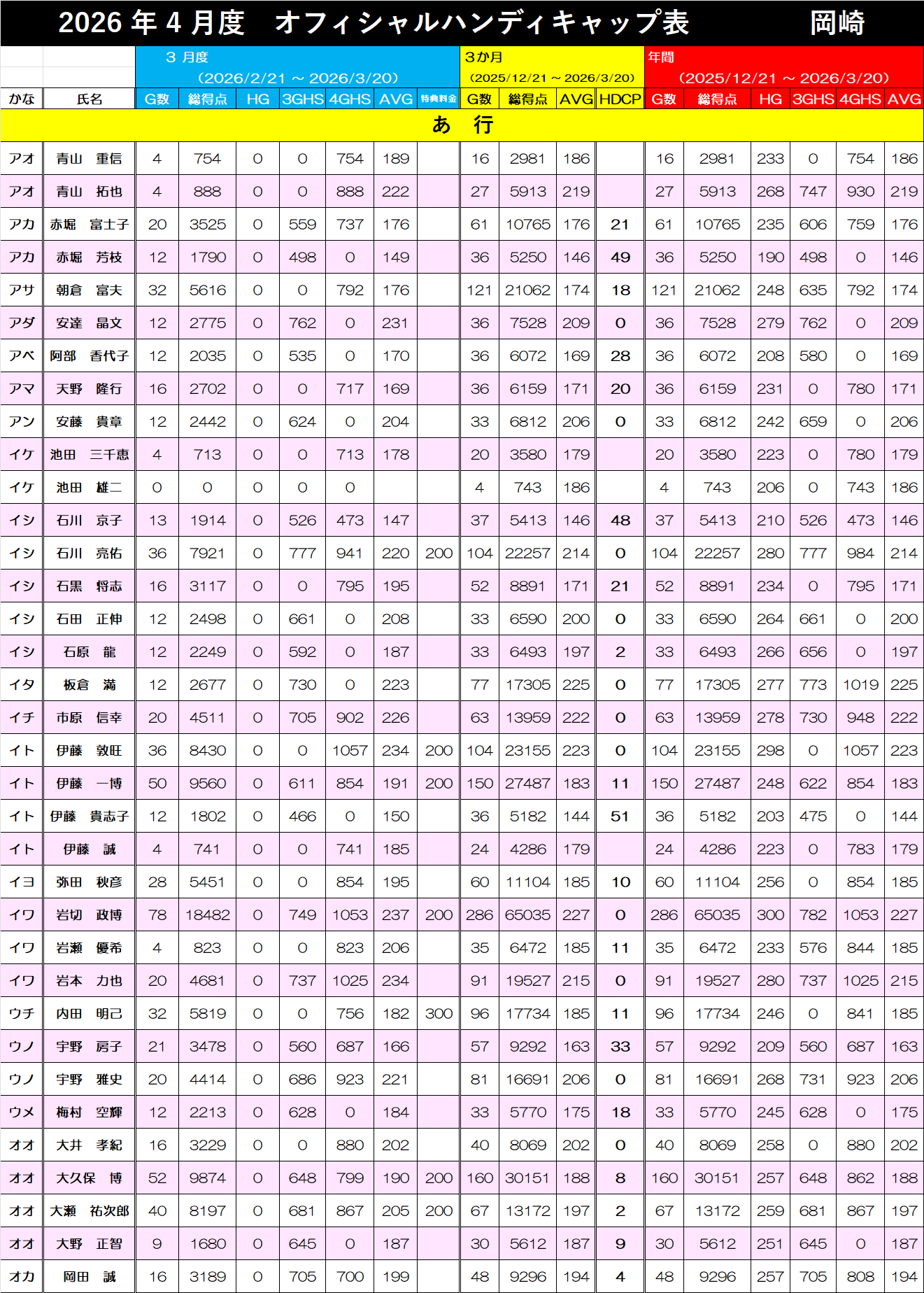 4月度オフィシャルハンディキャップ表です。(2026/2/21~2026/3/20集計分)