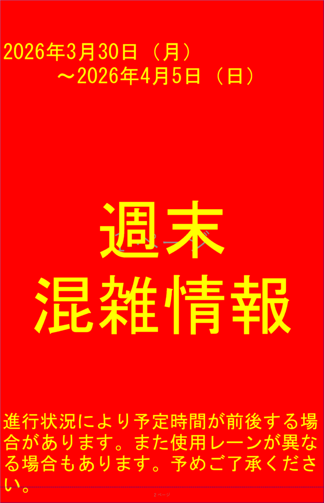 週間混雑状況3/30(月)~4/5(日)まで