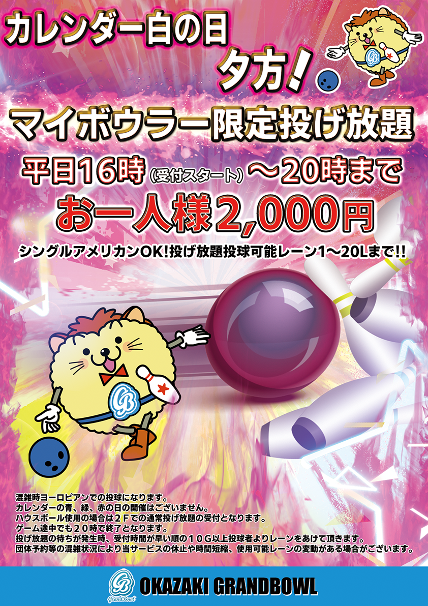 3階フロアー1レーンから20レーンまででマイボウラー限定となります。