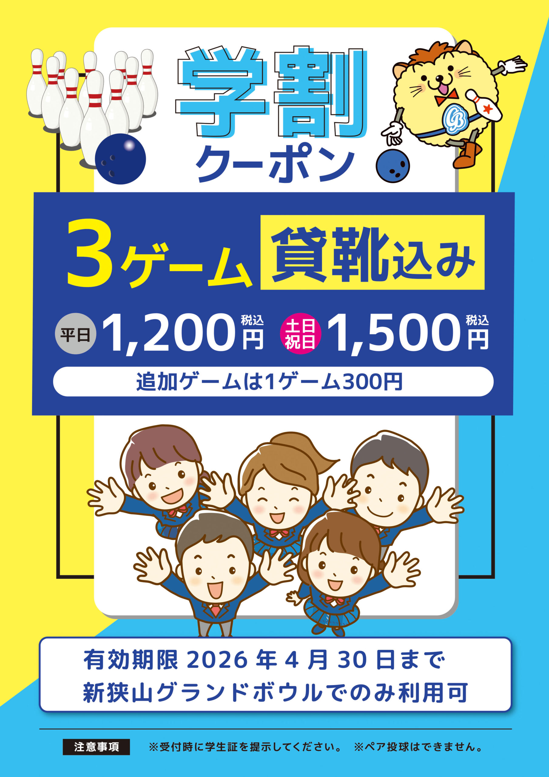 〇大学生・高校生は学生証をご提示ください