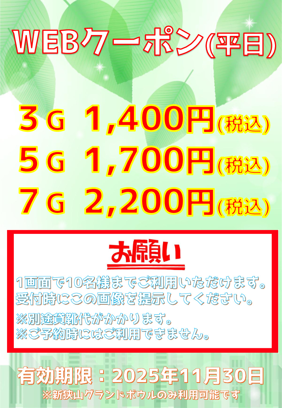 【有効期限 2025年11月30日迄】※ご予約ではご利用できません※ペア投球は出来ません※前金制となります。途中終了でもご返金は出来ません