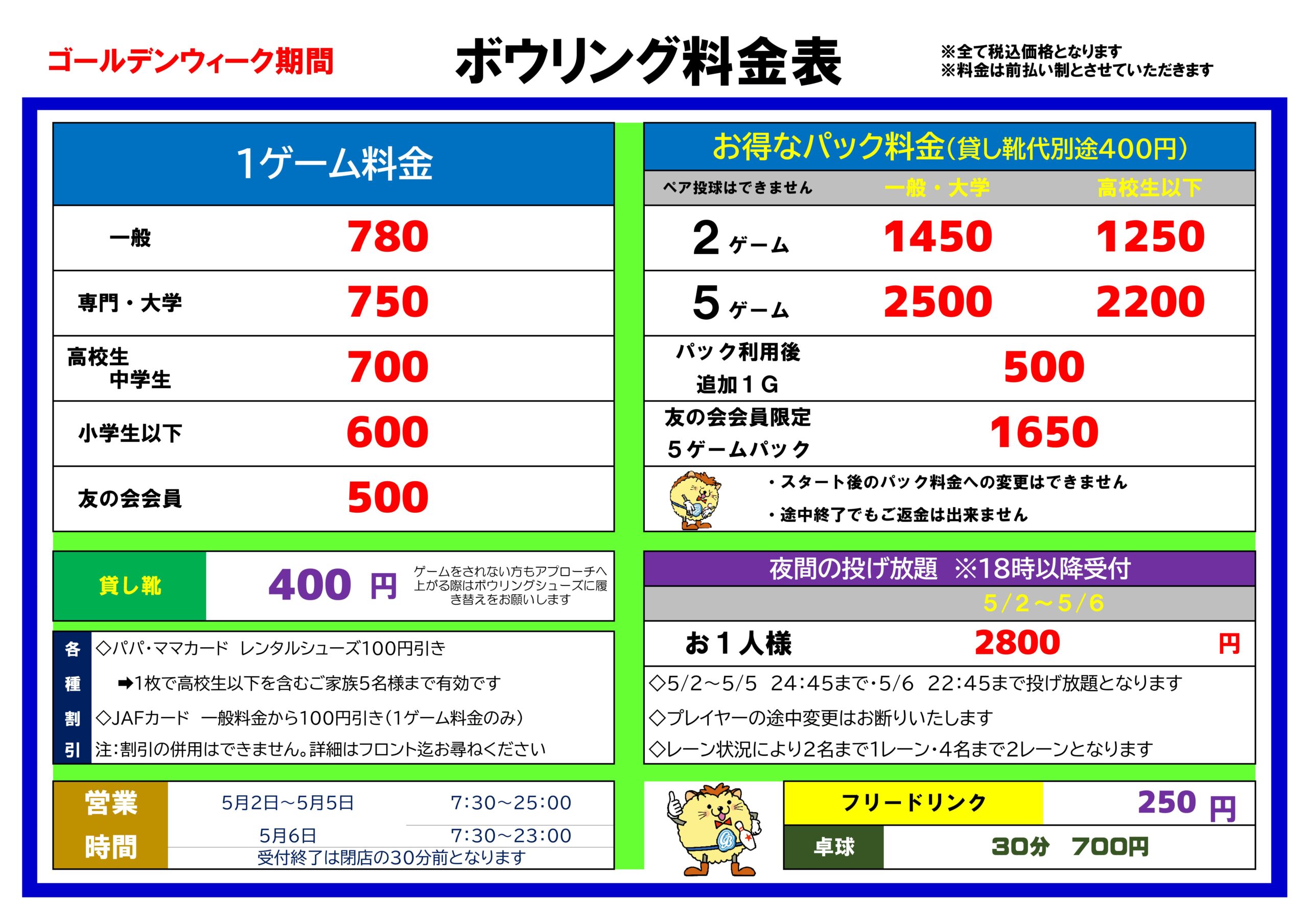 ※来場時のレーン状況によるキャンセルはお断りいたします