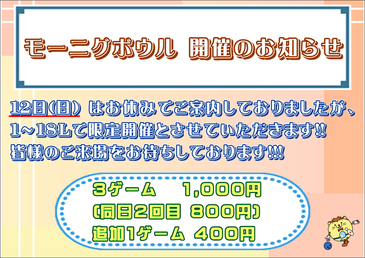4月12日(日) モーニングボウル開催いたします!!