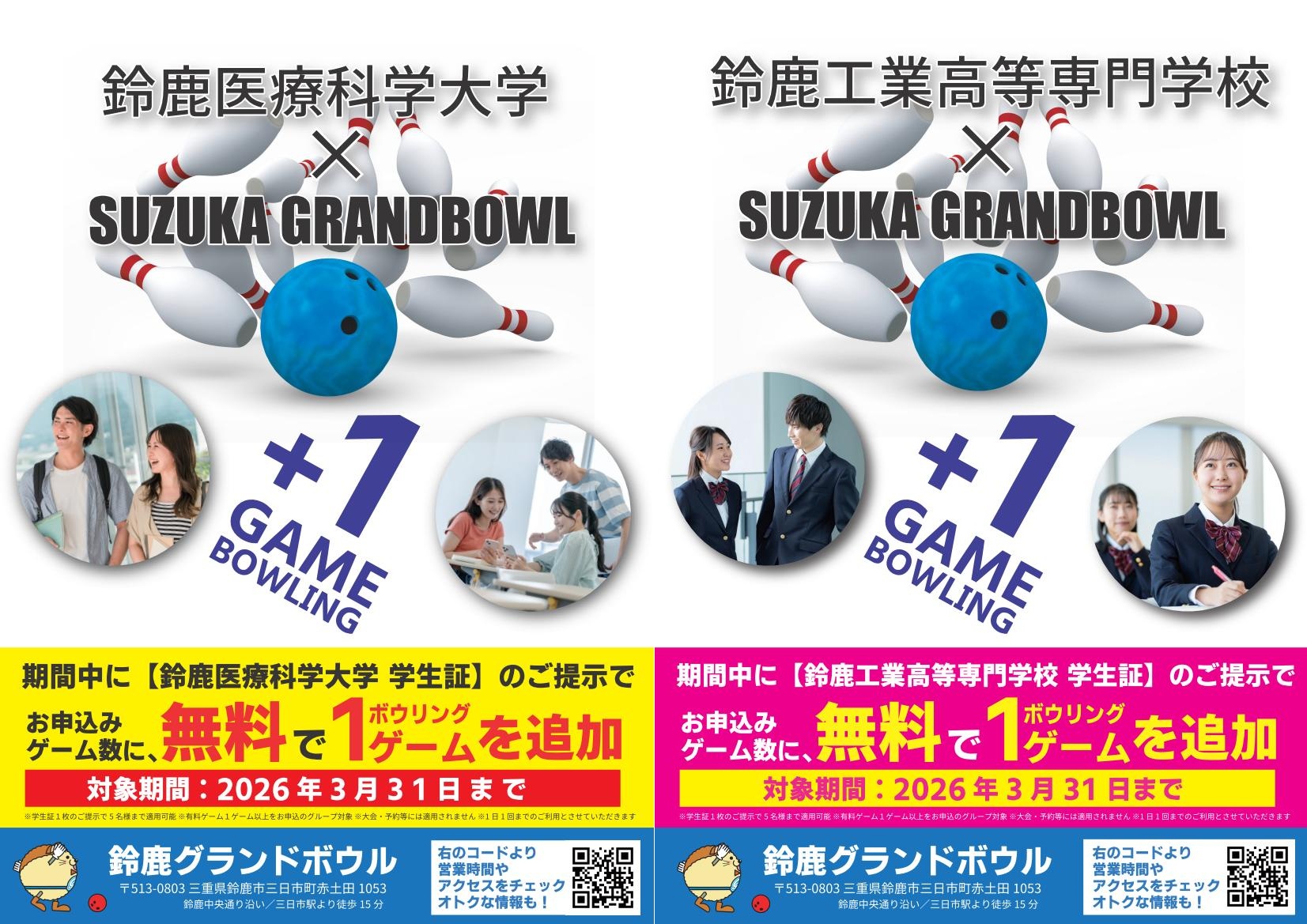期間中に鈴鹿工業高等学校ならびに鈴鹿医療科学大学の学生証のご提示で