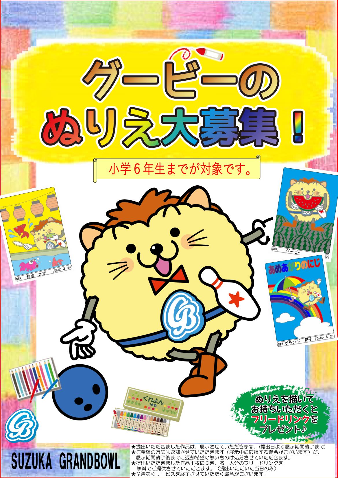 小学生以下限定でグービーのぬりえを塗ってお持ちいただくとその際に作品1枚につき、
