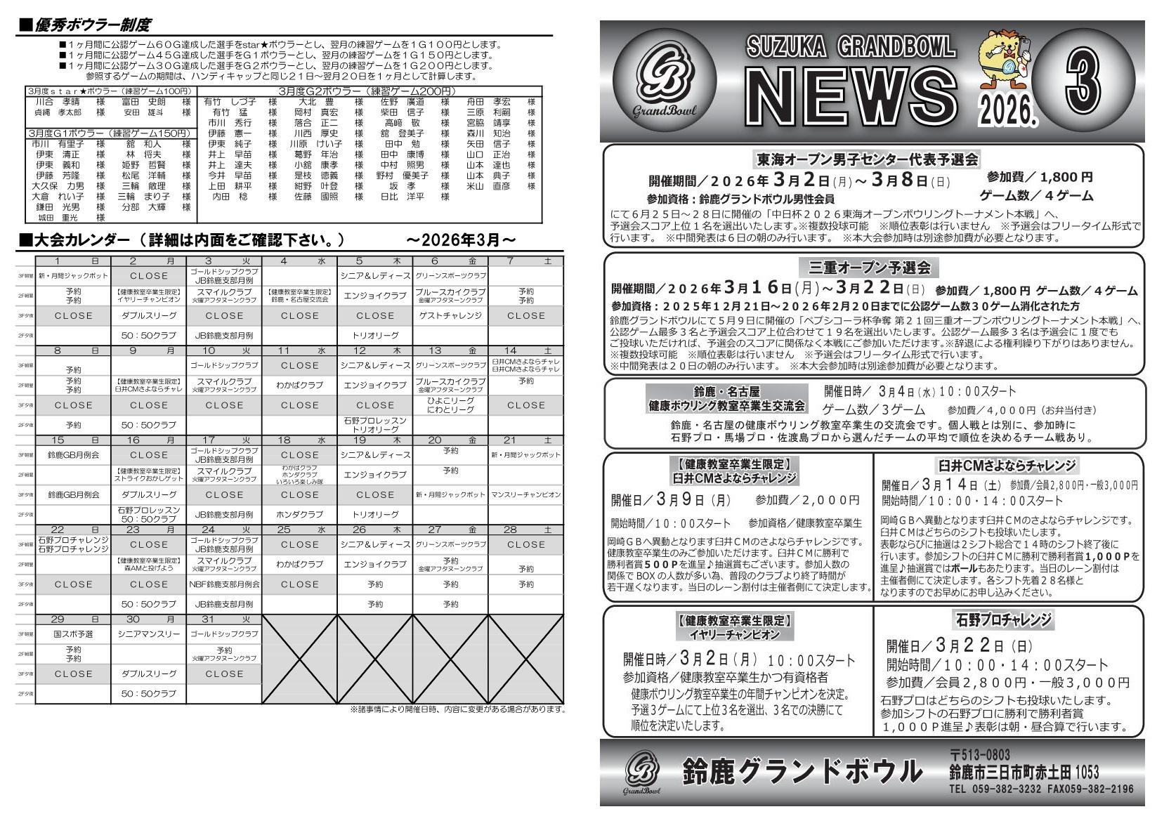 2026年2月24日変更変更箇所:石野プロレッスン開催日変更前:3月19日→変更後3月12日