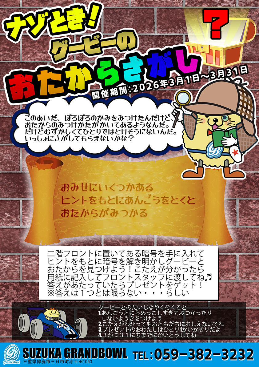 2026年3月1日より「ナゾとき!グービーのおたからさがし」を開催いたします。