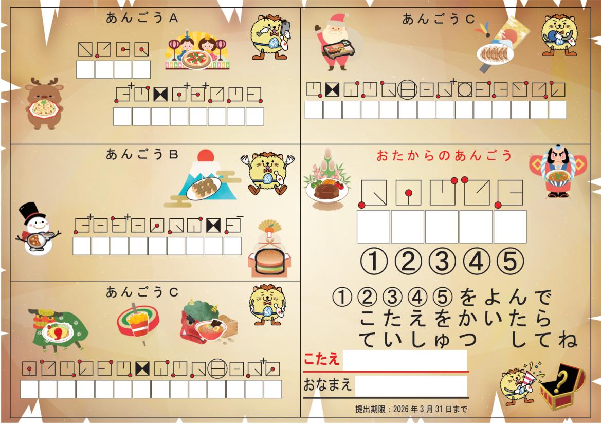 ※答えがわかってもお友達には教えないようお願いいたします。