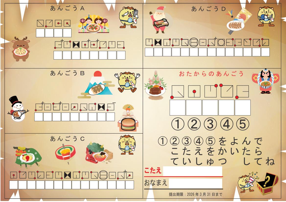 ※答えがわかってもお友達には教えないようお願いいたします。