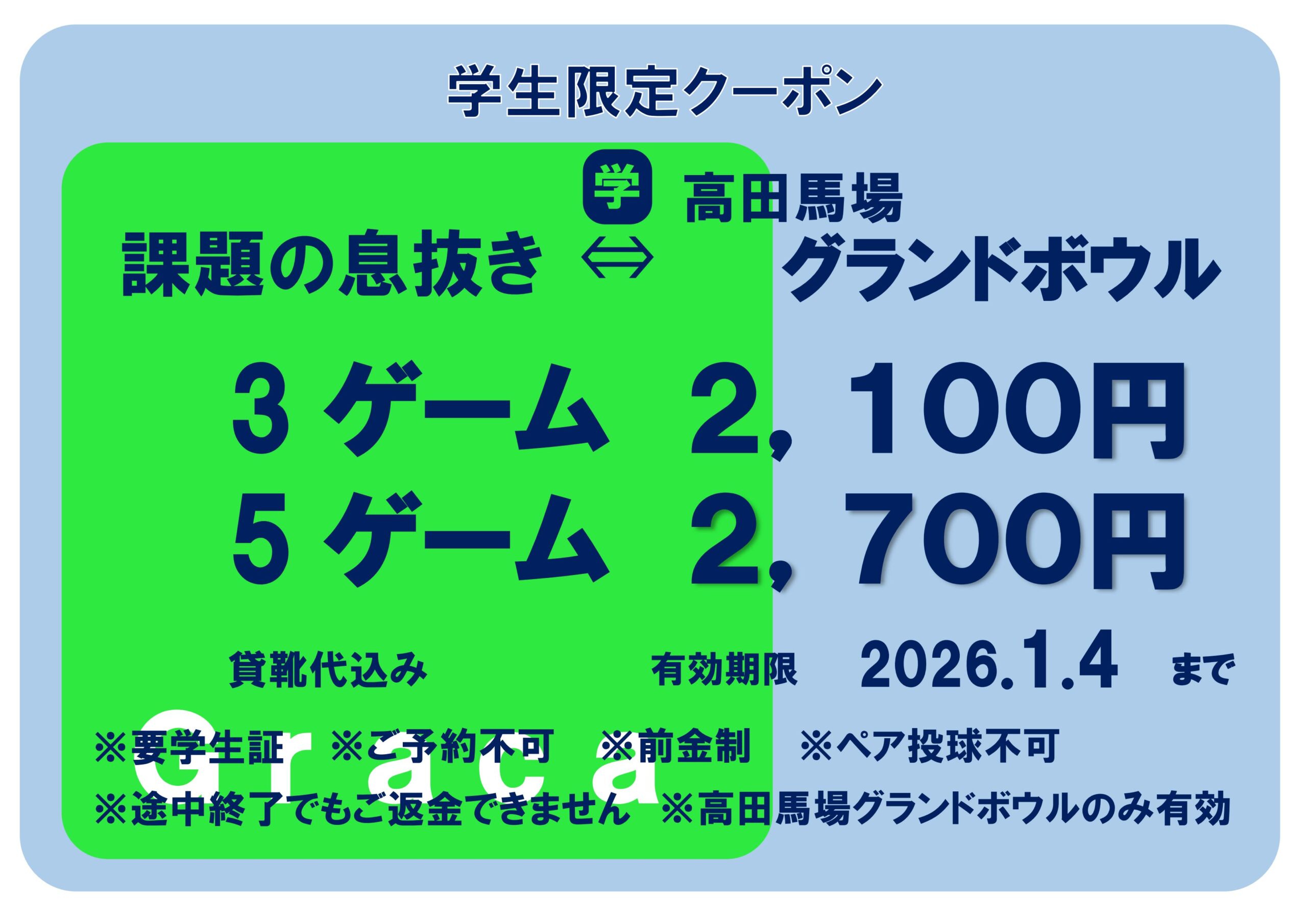 【学生証を必ずお持ちください】対象:高校生以下・大学生・専門学校生