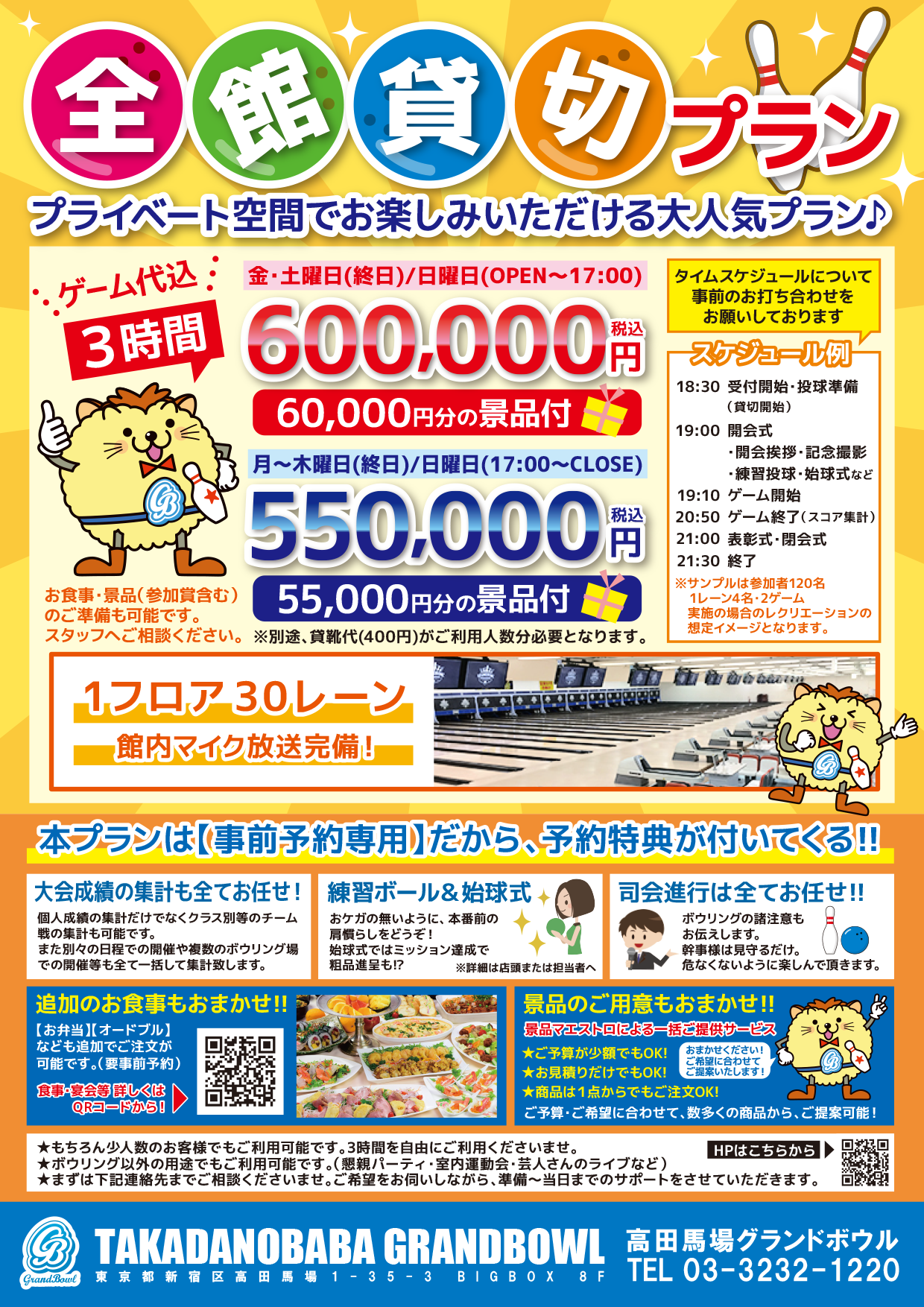 全館まるっと3時間貸し切り♪ 60000円分の景品付き!