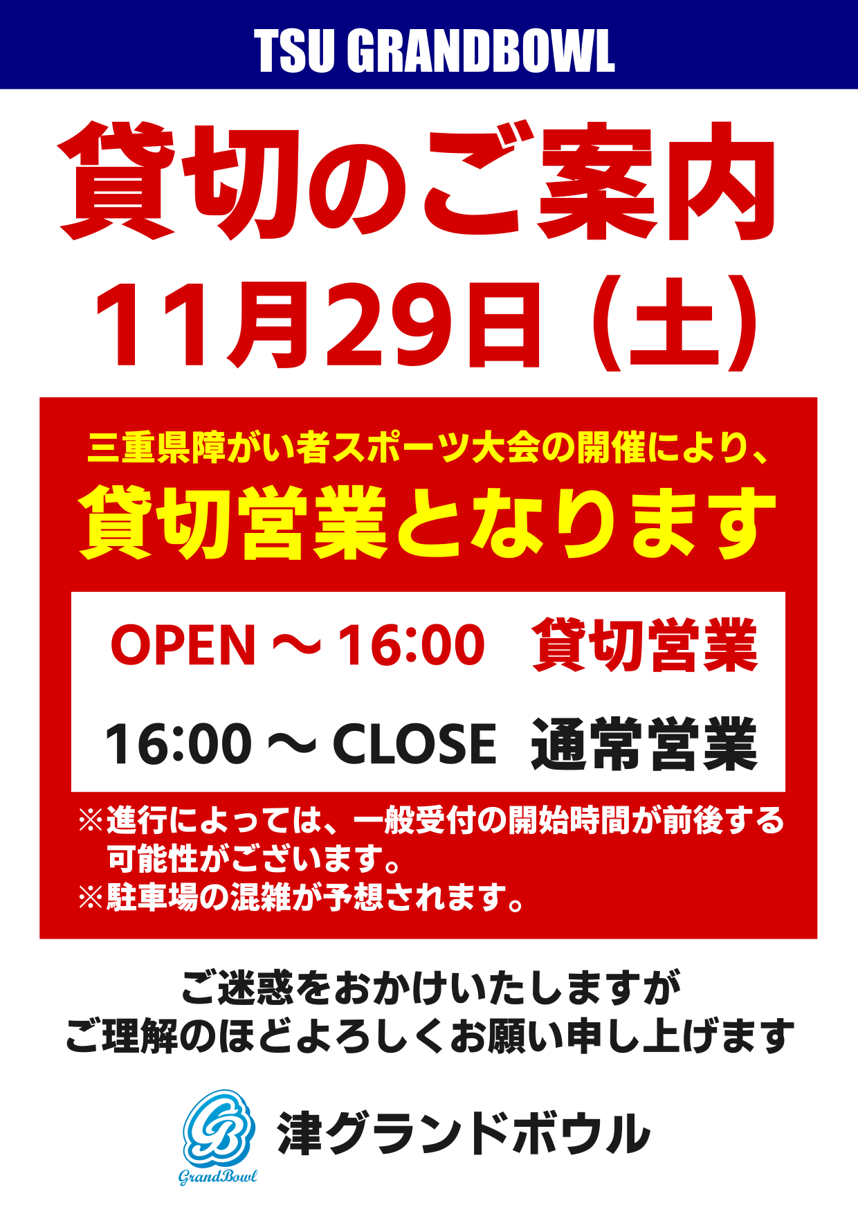 11月29日 貸切営業のお知らせ